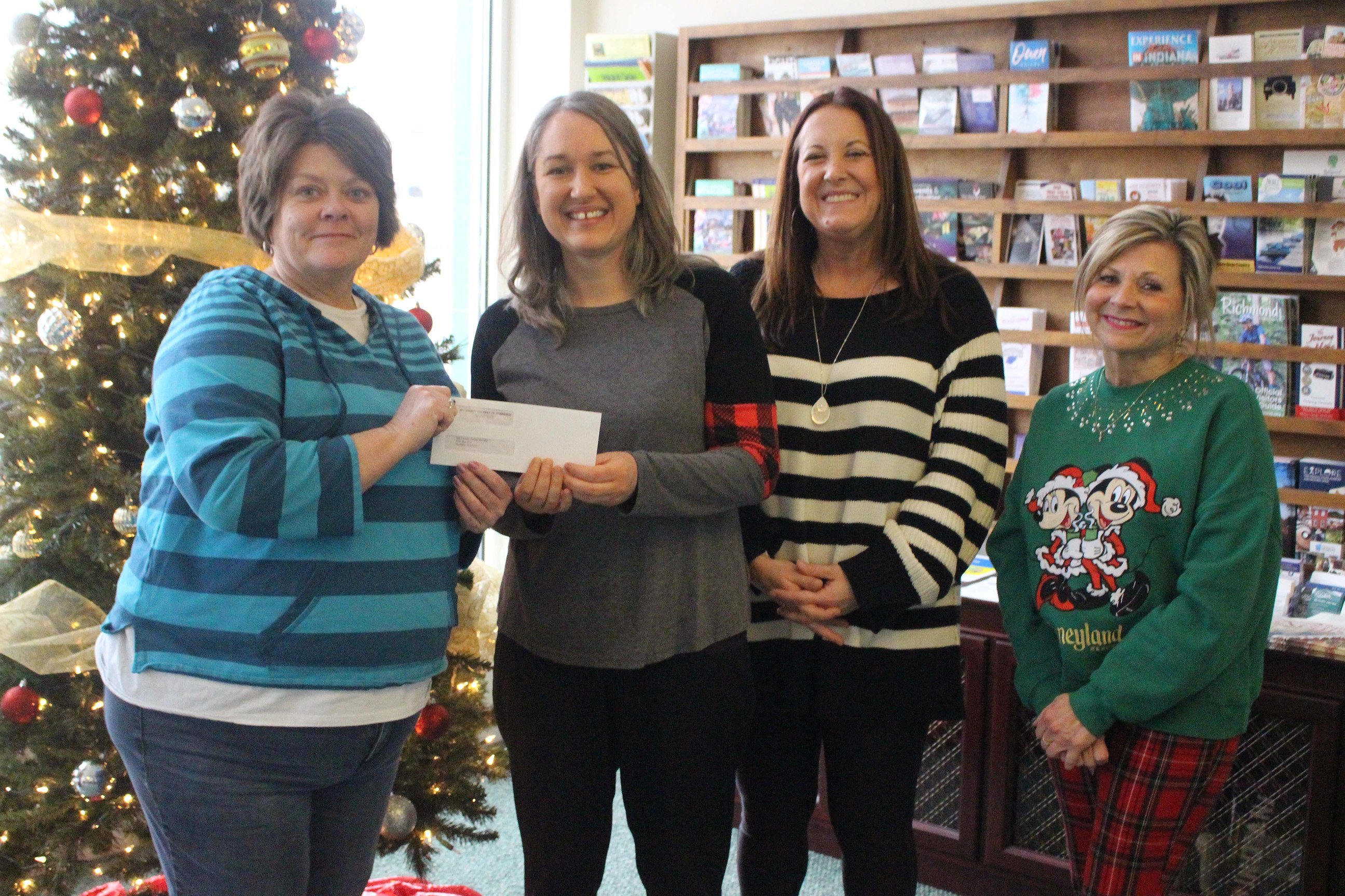Jay County Chamber of Commerce announced Festival of Trees winners Thursday. Pictured above are first place winner Jay County Conservation Club with club caretaker Missie Pagel, Tami Vormohr, chamber director Amanda Nixon-Randall and Jay County Public Library children’s services librarian Shana Neuenschwander. (The Commercial Review/Bailey Cline)