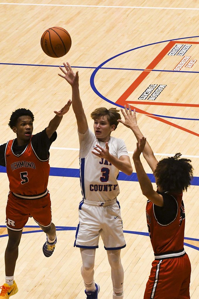 “Trying to survive is what it felt like to be honest with you,” said first-year JCHS coach Tyler Rigby, whose team managed to stall out the final two minutes for the narrow victory. “I thought we struggled a little bit in the first half with the pressure again but we did respond in the second half, but we did respond in the second half. … (Richmond) is so good creating offense with their defense. You just can’t turn it over, can’t miss an easy layup or they’re going to get out in transition.
