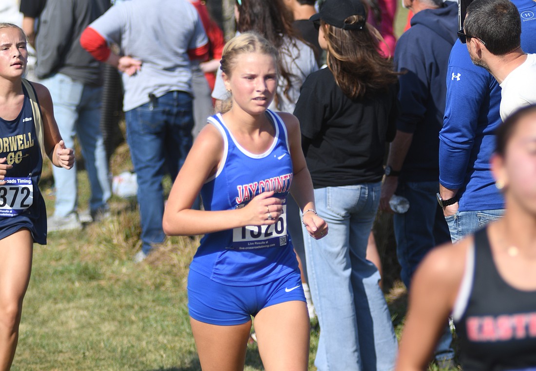 Jay County locked up its runner-up finish with three more runners tightly packed in the late 20s as Sibray climbed to 26th in 22:52.6, Brooklyn Byrum completed the team score in 28th at 23:05 and Abby Fifer pushed back opponents in 29th with a time of 23:07.3.